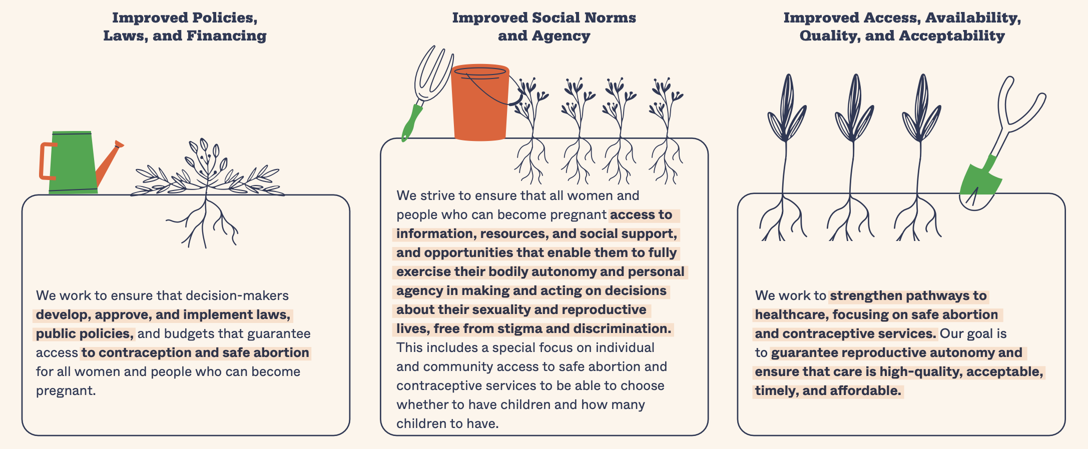 As we partner with diverse actors and institutions and tend to our collective garden—represented by the sustainable abortion ecosystem—these flowers transform into fruits that sustain health and well-being.